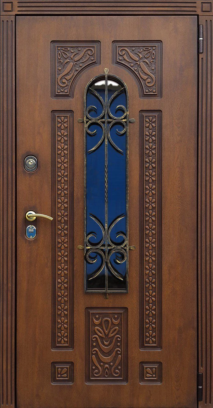 Входные двери в Североуральске с применением декора витражом изготавливаются из стального профиля, придающего прочность конструкции, а сама витражная вставка обладает высокой взломостойкостью, поскольку для витражных композиций используется специальное стекло, обработанное особым образом. Усилить надежность витражного элемента можно с помощью использования декоративных кованных решеток.
