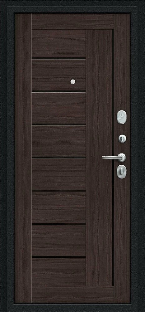 Надежная входная Дверь Браво Проф Букле черное/Wenge Veralinga премиум класса по цене 33 231 руб. Большая толщина стали защитит от проникновения в ваш дом, квартиру или коттедж. Используется очень качественная фурнитура: замки, цилиндры, ручки, защелки. Покрытие и отделка двери изготовлено под внимательным контролем производителя. Дверь имеет долгий срок службы и гарантию.